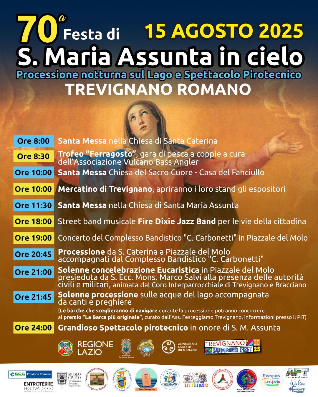 Ore 21:00 Solenne concelebrazione Eucaristica in Piazzale del Molo presieduta da S. Ecc. Mons. Marco Salvi alla presenza delle autorità civili e militari, animata dal Coro Interparrocchiale di Trevignano e Bracciano